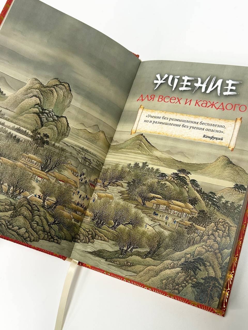 Учение Конфуция, основанное на человеколюбии, добродетели, верности традициям, мудрости и искренности, было распространено в Китае подобно учению Будды в Индии, а само конфуцианство имело статус государственной идеологии до начала XX века и даже называлось религией. В этом подарочном издании представлено более 300 философских изречения Конфуция из самой почитаемой книги конфуцианства – "Беседы и суждения", в профессиональном переводе П.С. Попова (1842-1913), а также воспоминания о Конфуции его учеников. Жемчужины восточной мудрости гармонично дополняют 128 классических китайских гравюр. Прикоснитесь к бессмертной душе Учителя, который уже более 2000 лет передаёт знания всё новым поколениям читателей, вдохновляя и поддерживая каждого из них на пути к Небу своими лаконичными, но мудрыми словами.