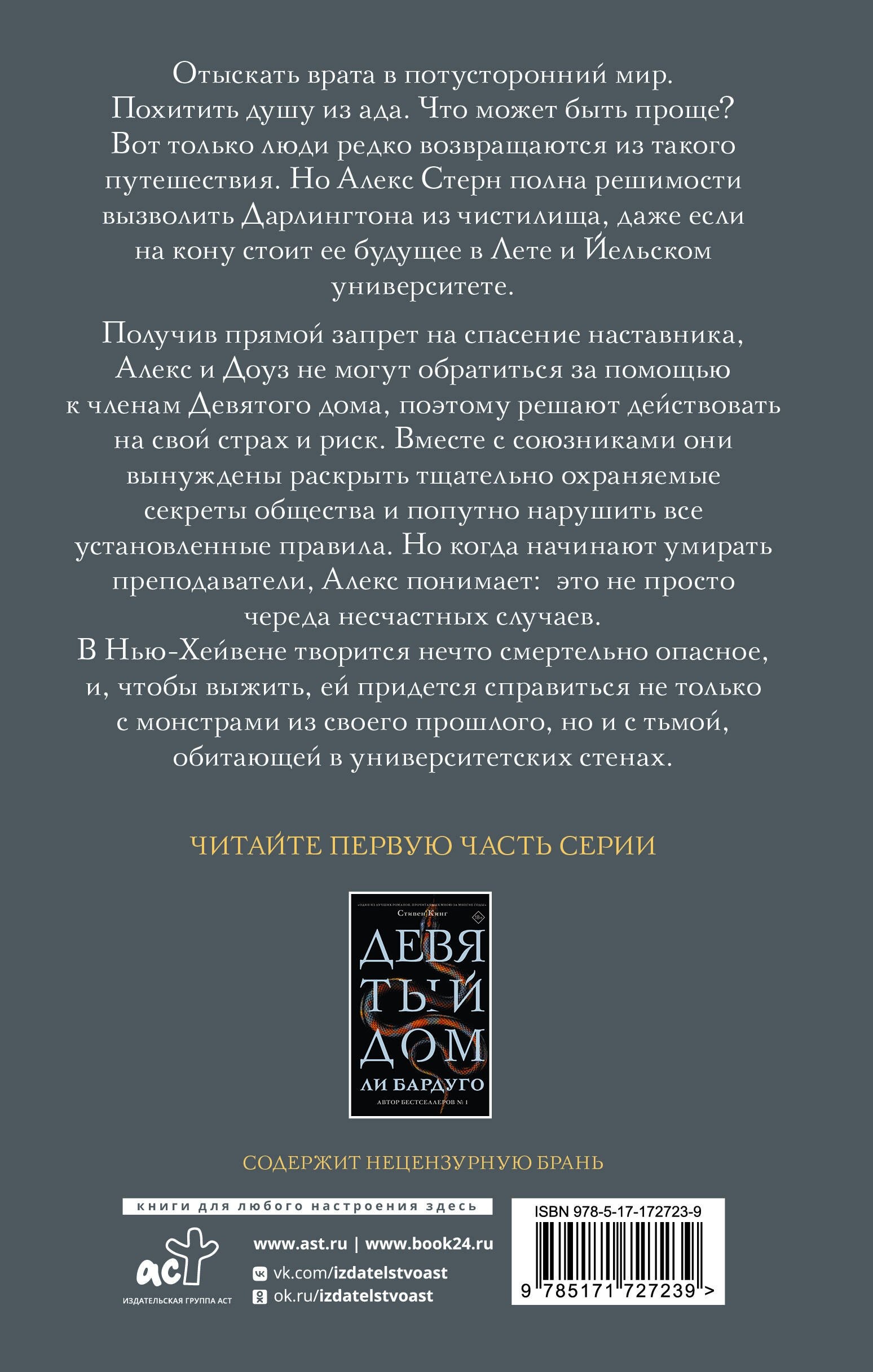 университете. Получив прямой запрет на спасение наставника, Алекс и Доуз не могут обратиться за помощью к членам Девятого дома, поэтому решают действовать на свой страх и риск. Вместе с союзниками они вынуждены раскрыть тщательно охраняемые секреты общества и попутно нарушить все установленные правила. Но когда начинают умирать преподаватели, Алекс понимает: это не просто череда несчастных случаев. В Нью-Хейвене творится нечто смертельно опасное, и, чтобы выжить, ей придется справиться не только с монстрами из своего прошлого, но и с тьмой, обитающей в университетских стенах.