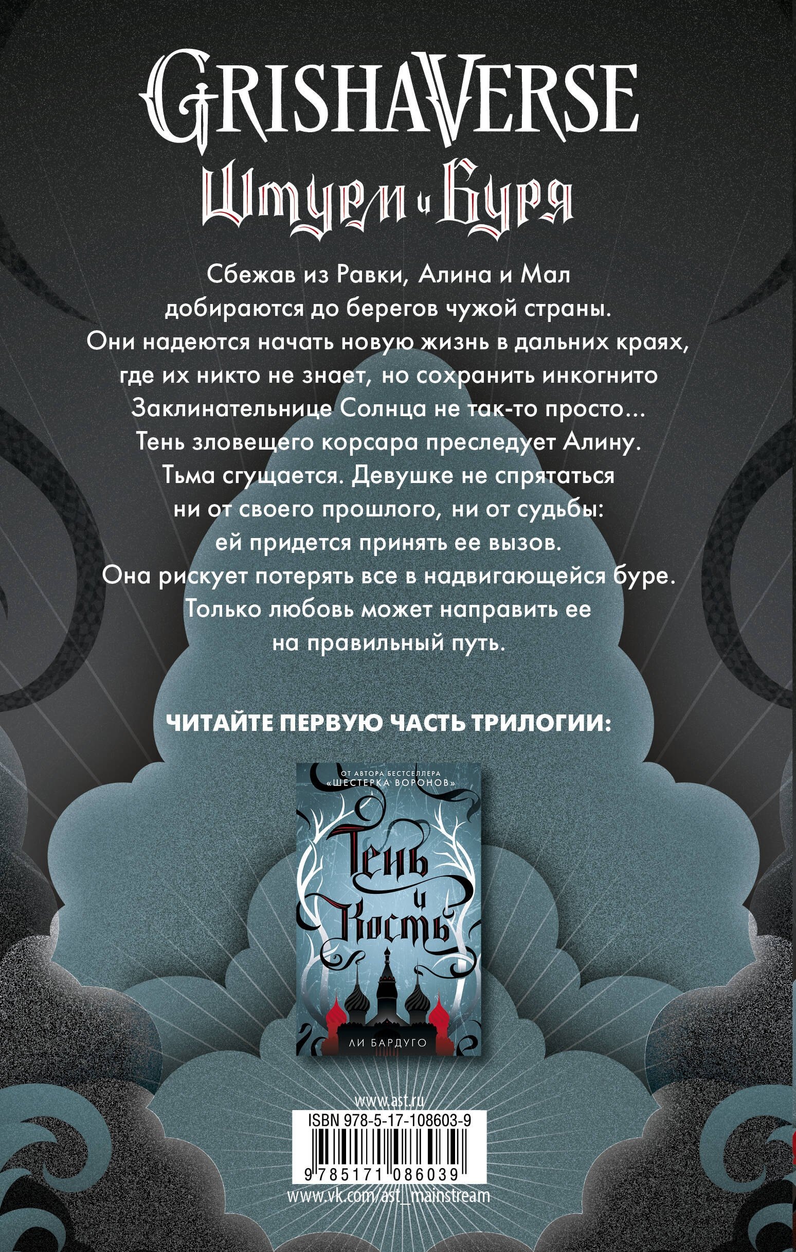 «Штурм и буря» - новый роман в жанре фэнтези Ли Бардуго, автора бестселлера «Шестерка воронов». Продолжение истории заклинательницы Солнца Алины Старковой и ее друга Мала; вторая часть трилогии об их приключениях. Чудом избежав смерти и поглощения тьмой, теперь они вынуждены скрываться от одного из самых могущественных и древних колдунов на земле. Все, о чем мечтают изгнанники - это тихая и спокойная жизнь подальше от раздираемой войной Равки. Но магическая сила, которую открывает в себе Алина, слишком велика для того, чтобы держать ее запертой вечно. Рано или поздно ей придется встретиться лицом к лицу со своим злейшим врагом, ведь их судьбы неразрывно связаны, как свет и тьма. Только магия заклинательницы Солнца может остановить безумного Дарклинга, но для того, чтобы осуществить это, Алине и Малу придется совершить невозможное. Этот увлекательный роман - для всех любителей подросткового фэнтези, а также поклонников мира «Шестерки воронов». Книга стала бестселлером New York Times и получила множество положительных отзывов в таких изданиях, как The Guardian, Huffington Post, USA Today, Vanity Fair и др. «Отличается от всего, что я когда-либо читала», - так отозвалась о трилогии Вероника Рот, автор бестселлера «Дивергент».