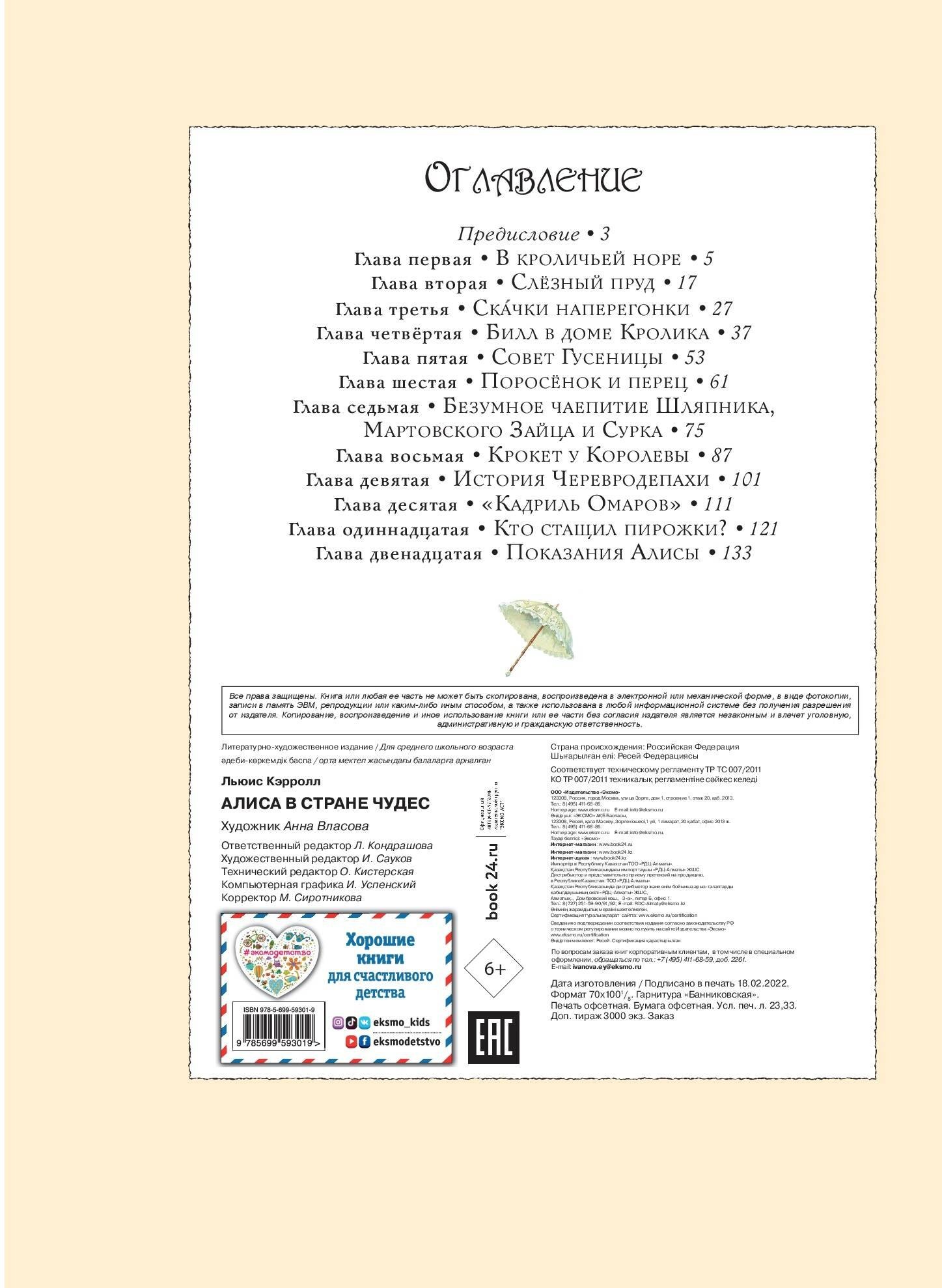 А замечательные иллюстрации Анны Власовой — эксклюзивные, нигде не издававшиеся прежде — представят сказку в новом свете, сделают её ещё сказочнее. Большой формат и красочные иллюстрации в духе времени Льюиса Кэрролла делают эту книгу прекрасным подарком.