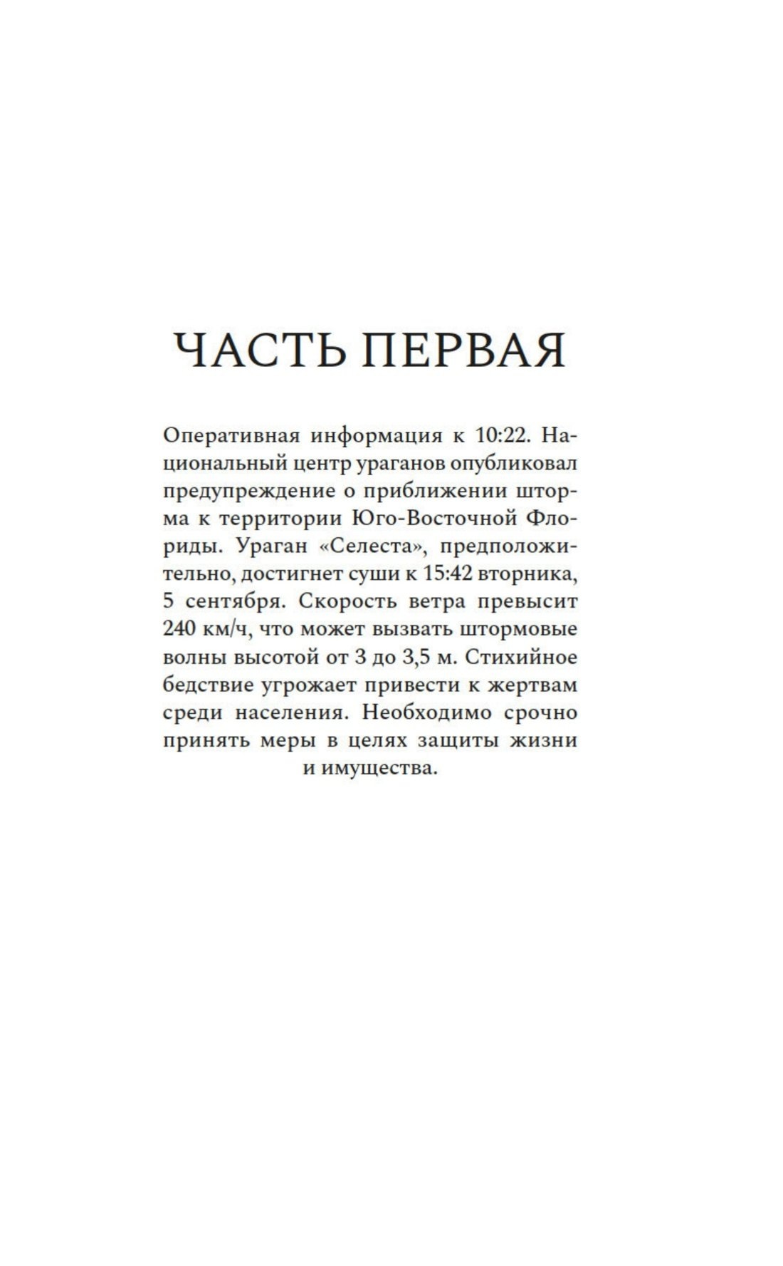 По мере того как ураган набирает мощь, растет и напряжение в доме. Подорванное доверие, давние скелеты в шкафу и, главное, странное чувство, что не все выберутся отсюда живыми, — все это держит в напряжении, не позволяя отвлечься от книги ни на минуту.