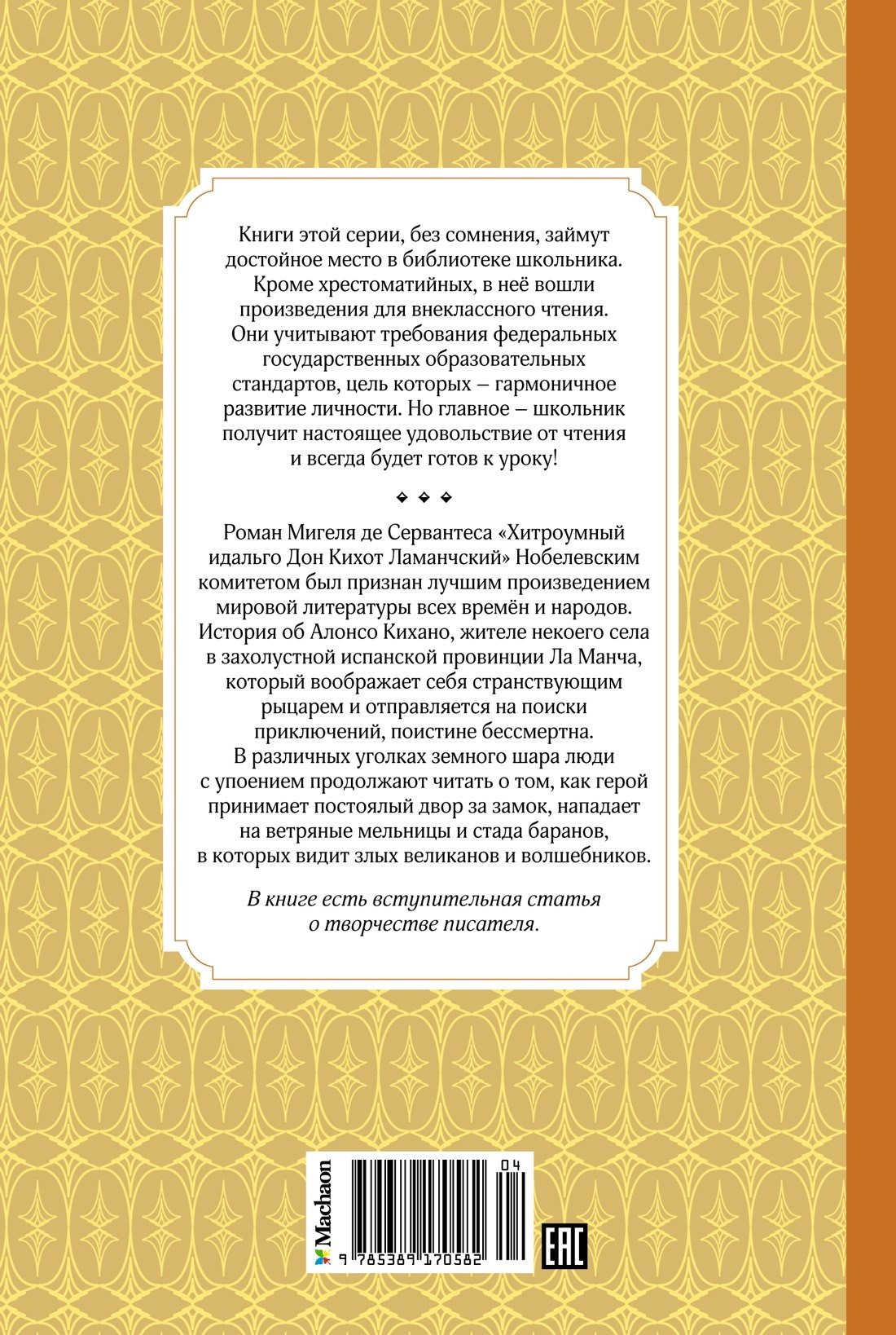 Данное издание представляет собой пересказ для детей книги, вошедшей в сокровищницу мировой литературы. Её полное название – «Хитроумный идальго Дон Кихот Ламанчский». Написанная испанцем Мигелем де Сервантесом Сааведра (1547–1616), она задумывалась как пародия на рыцарские романы, которых в ту пору было великое множество. Автор и предположить не мог, что его сочинение будут читать и спустя четыре столетия, а имя его героя станет нарицательным.