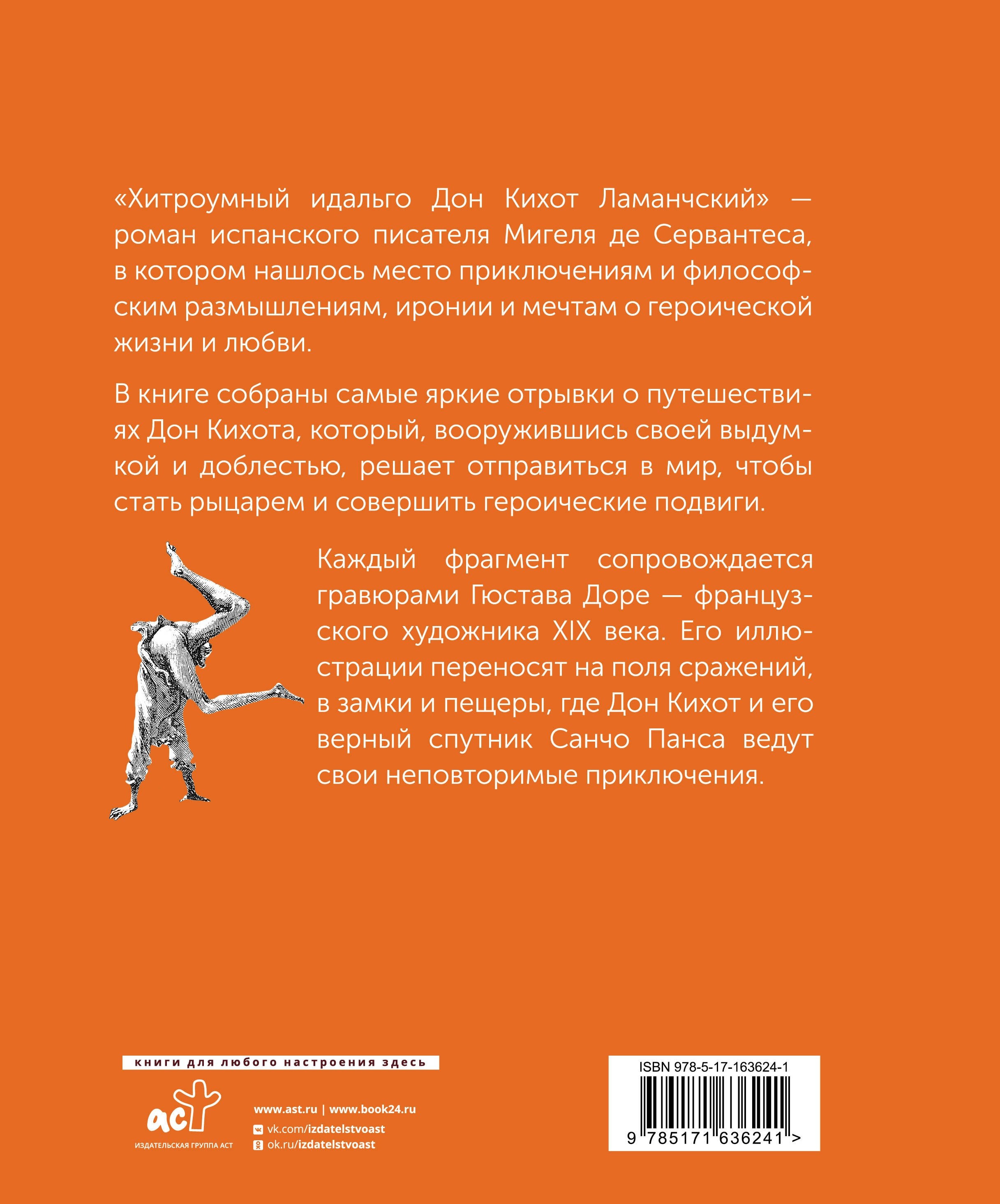Каждый фрагмент сопровождается гравюрами Гюстава Доре — французского художника XIX века. Его иллюстрации переносят на поля сражений, в замки и пещеры, где Дон Кихот и его верный спутник Санчо Панса ведут свои неповторимые приключения.