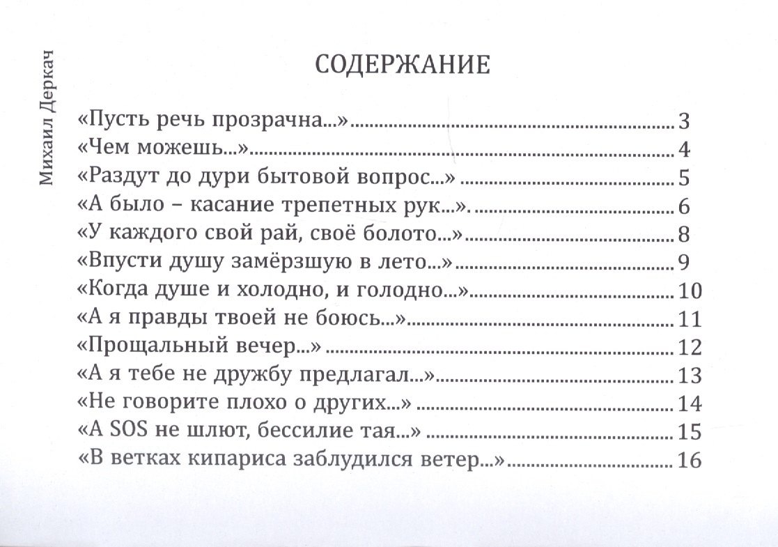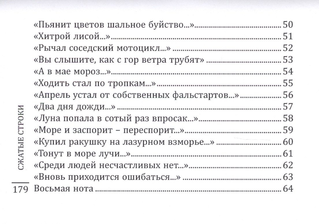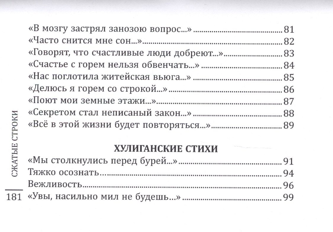 В сборник «Сжатые строки» вошли стихотворения разных лег а также совсем новые стихотворения и рассказы. Михаил Деркач лауреат литературных премий имени М. Шолохова, М. Матусовскогс В. Шутова, Т. Снежиной, Т. Шевченко.