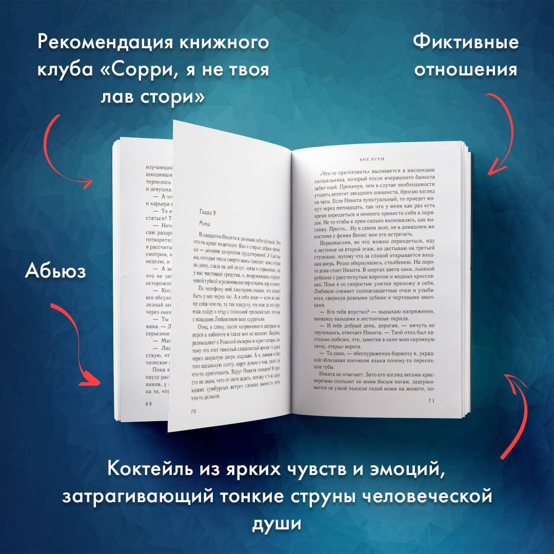 «Вне игры» — это книга о сломанной девушке, которая, несмотря на все трудности, находит в себе силы, чтобы подняться с колен и продолжить жить. Она готова доказать всему миру, что гораздо сильнее, чем кажется. А любовь, которую та совсем не ждала, лишь укрепит ее веру в себя и подарит крылья.