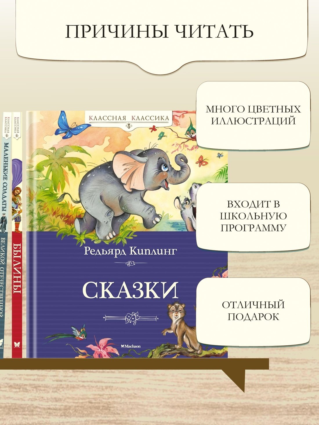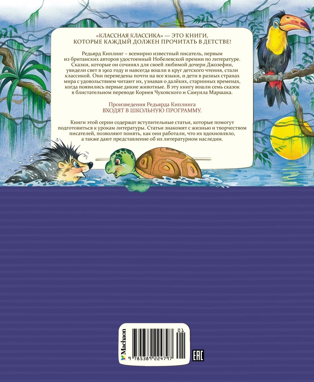 Р. Киплинг – всемирно известный писатель, первым из британских авторов удостоенный Нобелевской премии по литературе. Сказки он сочинял для своей дочери Джозефин, а когда девочка умерла в шестилетнем возрасте от пневмонии, Киплинг составил сборник из двенадцати сказок и выпустил его в 1902 году в память о своей любимице. Эти сказки о стародавних временах, когда появились первые дикие животные, переведены почти на все языки, и дети во всех странах с удовольствием читают их. В эту книгу вошли семь сказок в переводе замечательных детских писателей Корнея Чуковского и Самуила Маршака.