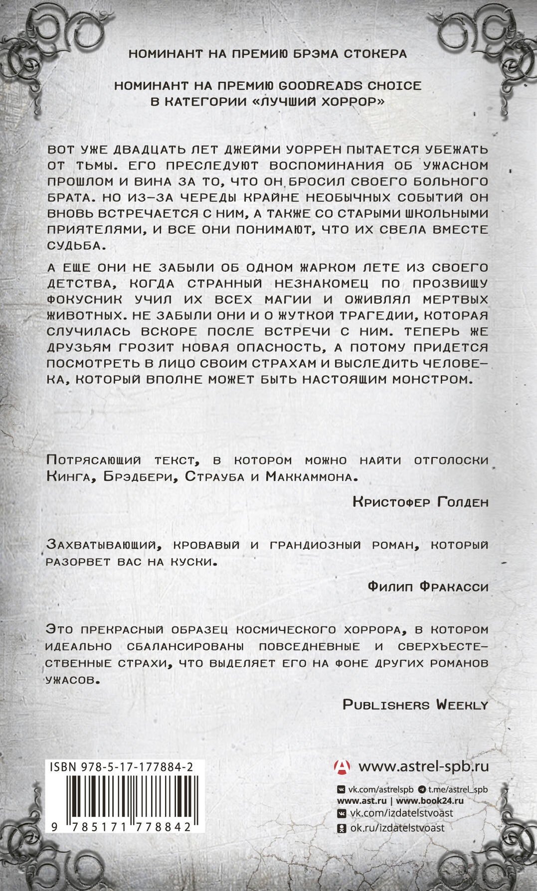 Вот уже двадцать лет Джейми Уоррен пытается убежать от тьмы. Его преследуют воспоминания об ужасном прошлом и вина за то, что он бросил своего больного брата. Но из-за череды крайне необычных событий он вновь встречается с ним, а также со старыми школьными приятелями, и все они понимают, что их свела вместе судьба. А еще они не забыли об одном жарком лете из своего детства, когда странный незнакомец по прозвищу Фокусник учил их всех магии и оживлял мертвых животных. Не забыли они и о жуткой трагедии, которая случилась вскоре после встречи с ним. Теперь же друзьям грозит новая опасность, а потому придется посмотреть в лицо своим страхам и выследить человека, который вполне может быть настоящим монстром.
