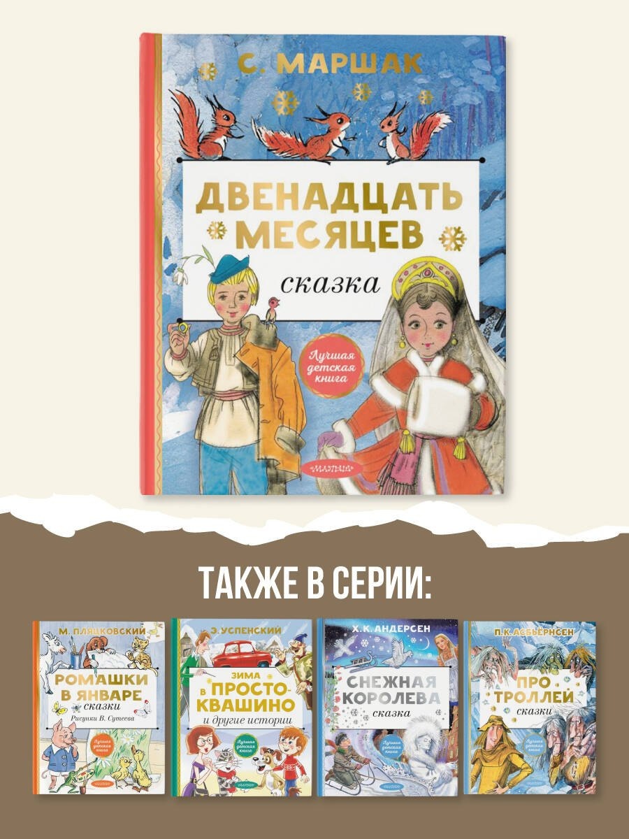 Сказку-пьесу «12 месяцев» С. Маршак написал по мотивам богемской сказки о том, как братья-месяцы помогли юной падчерице не только отыскать среди зимы подснежники, но и найти своего суженого.