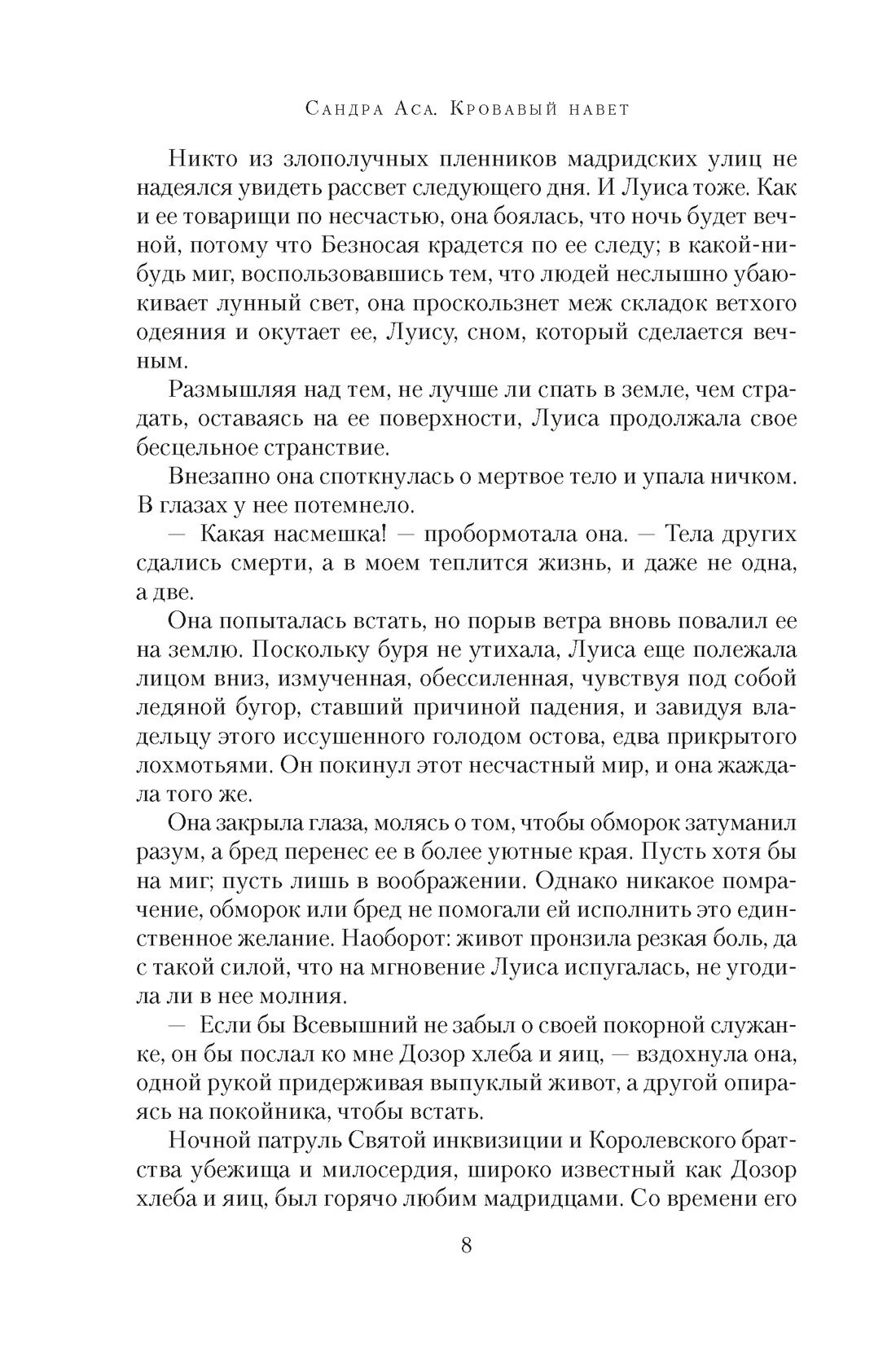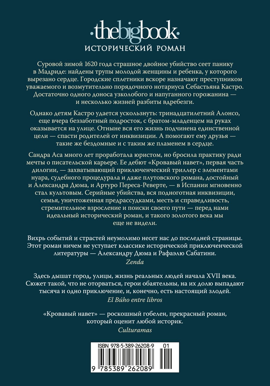 Сандра Аса много лет проработала юристом, но бросила практику ради мечты о писательской карьере. Ее дебют «Кровавый навет», первая часть дилогии, — захватывающий приключенческий триллер с элементами нуара, судебного процедурала и даже плутовского романа, достойный и Александра Дюма, и Артуро Переса-Реверте, — в Испании мгновенно стал культовым. Серийные убийства, вся подноготная инквизиции, семья, уничтоженная предрассудками, месть и справедливость, стремительное взросление и поиски своего пути — перед нами идеальный исторический роман, и такого золотого века мы еще не видели.