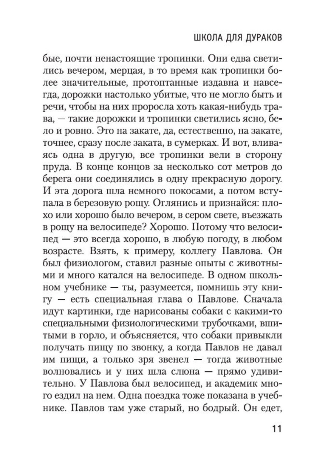 Роман «Школа для дураков» — одно из самых значительных явлений русской литературы конца ХХ века. По определению самого автора, это книга «об утонченном и странном мальчике, страдающем раздвоением личности… который не может примириться с окружающей действительностью» и который, приобщаясь к миру взрослых, открывает присутствие в мире любви и смерти.