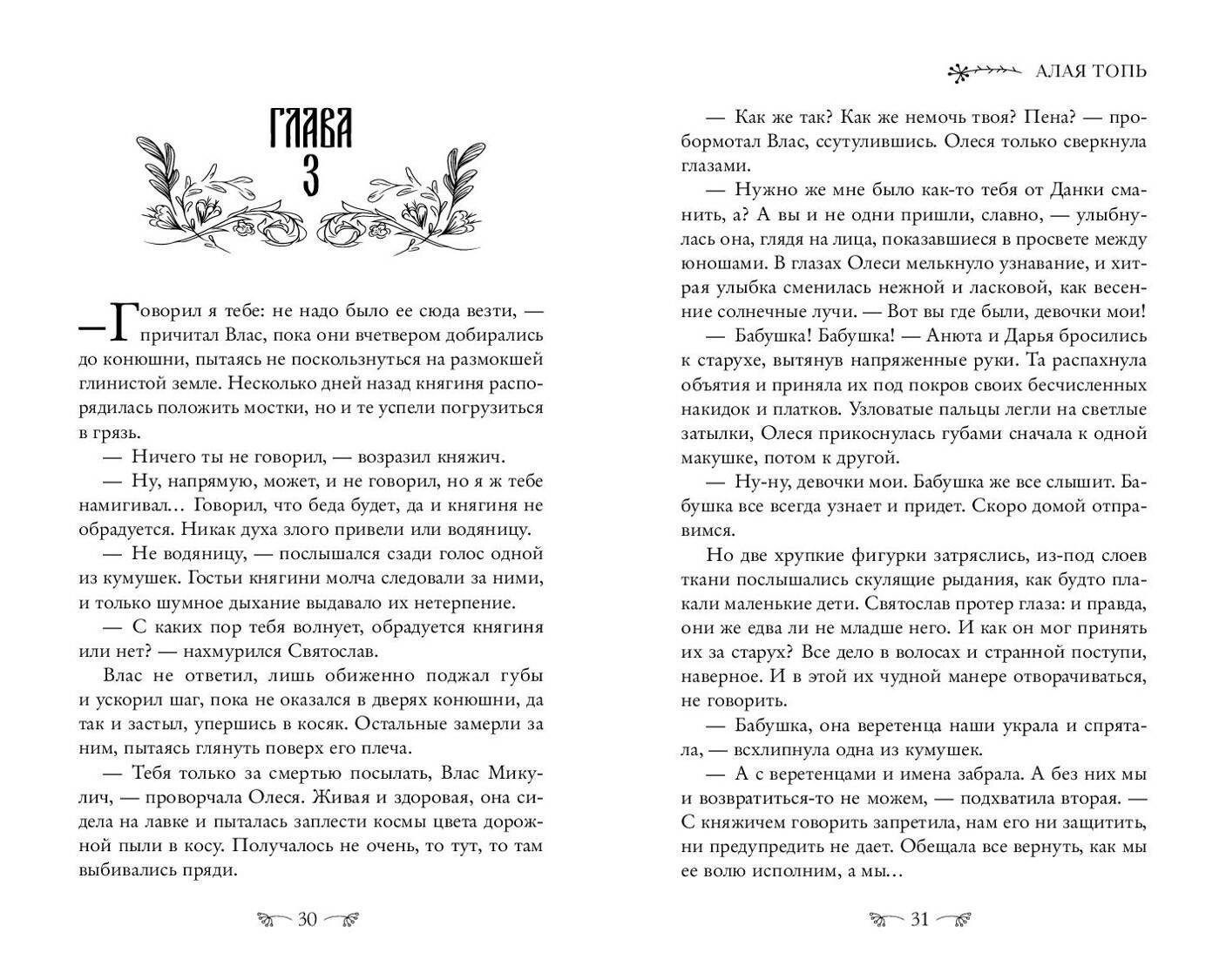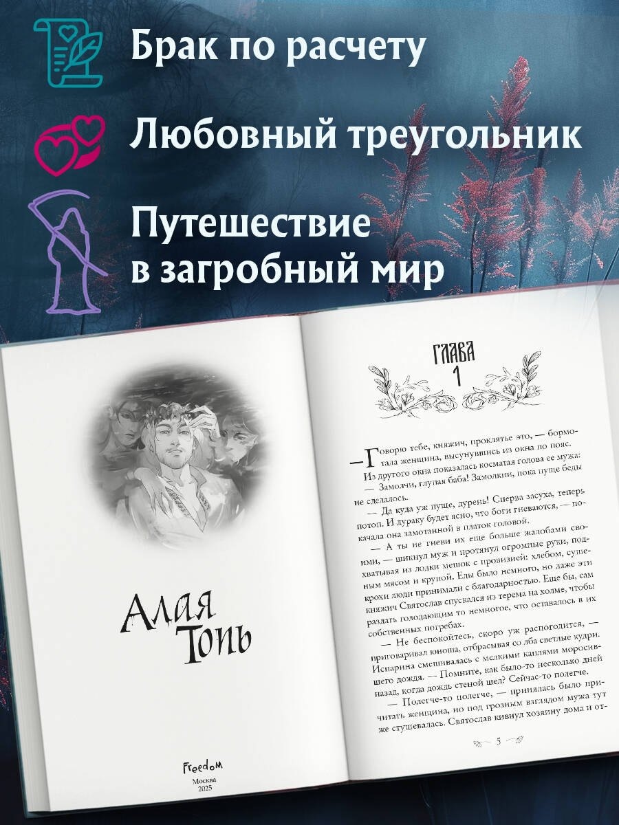 Княжение Святослава началось с проклятия. Земли его княжества укрыла мертвая вода, а вся надежда молодого правителя — на чаровницу Милораду, живущую посреди Алой Топи. В обмен на свою помощь Милорада требует дорогую награду — стать женой молодого князя. Но Святослав уже очарован и даже не представляет, что колдунья, ставшая его надеждой, вот-вот превратится в его проклятие.