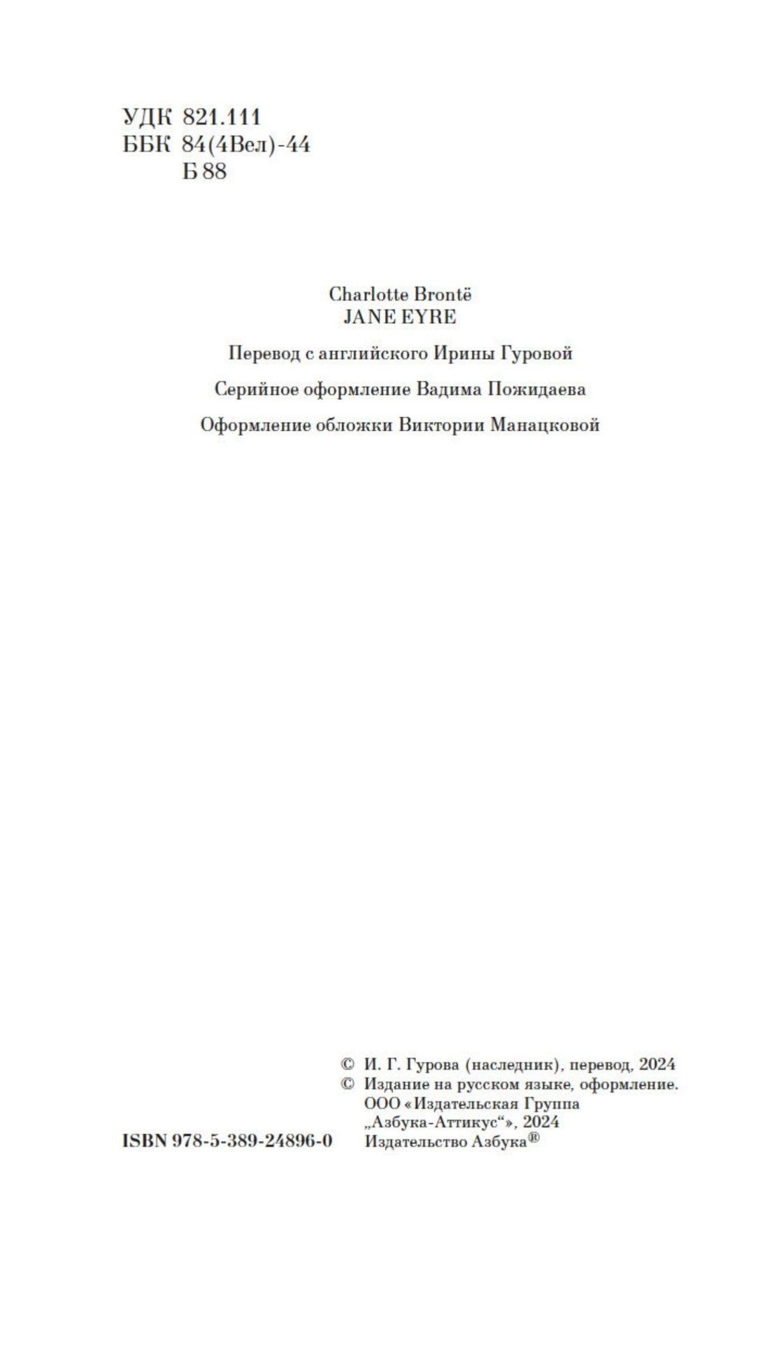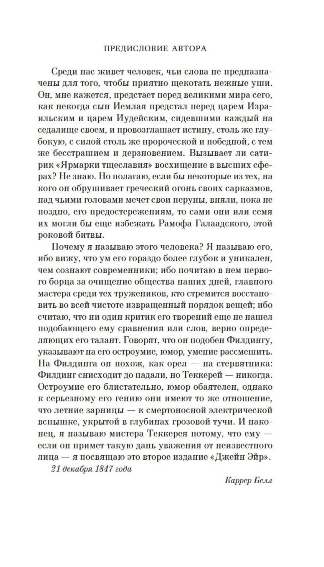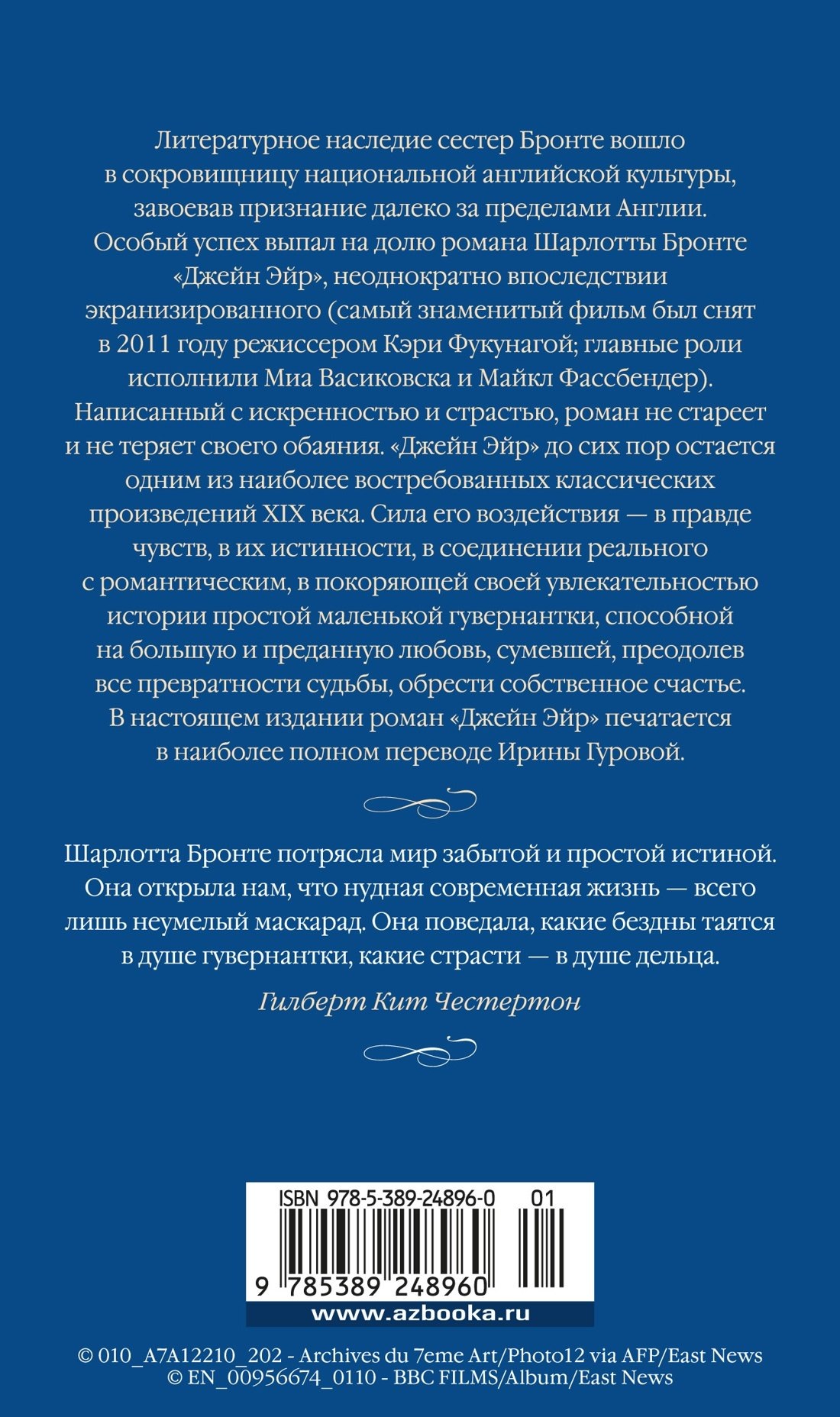 Литературное наследие сестер Бронте вошло в сокровищницу национальной английской культуры, завоевав признание далеко за пределами Англии. Особый успех выпал на долю романа Шарлотты Бронте «Джейн Эйр», неоднократно впоследствии экранизированного (самый знаменитый фильм был снят в 2011 году режиссером Кэри Фукунагой; главные роли исполнили Миа Васиковска и Майкл Фассбендер). Написанный с искренностью и страстью, роман не стареет и не теряет своего обаяния. «Джейн Эйр» до сих пор остается одним из наиболее востребованных классических произведений XIX века. Сила его воздействия — в правде чувств, в их истинности, в соединении реального с романтическим, в покоряющей своей увлекательностью истории простой маленькой гувернантки, способной на большую и преданную любовь, сумевшей, преодолев все превратности судьбы, обрести собственное счастье. В настоящем издании роман «Джейн Эйр» печатается в наиболее полном переводе Ирины Гуровой.