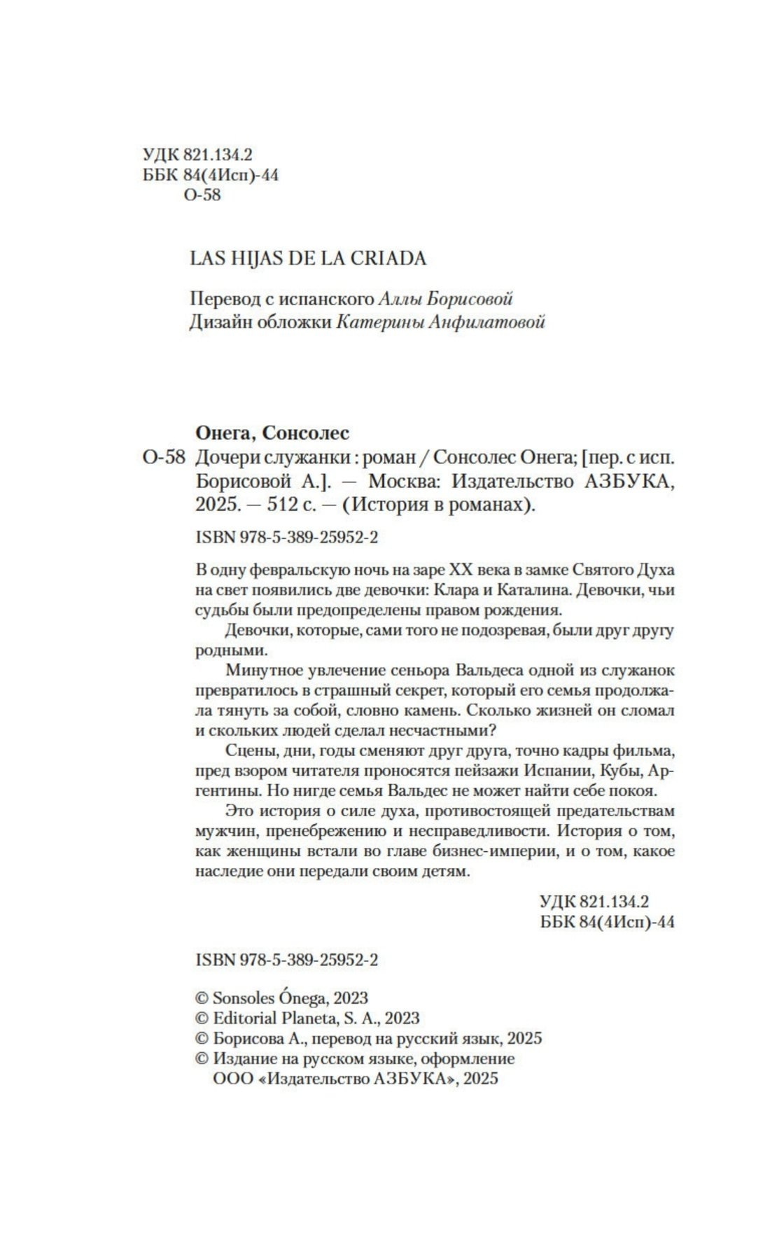 В одну февральскую ночь на заре XX века в замке Святого Духа на свет появились две девочки: Клара и Каталина. Девочки, чьи судьбы были предопределены правом рождения.