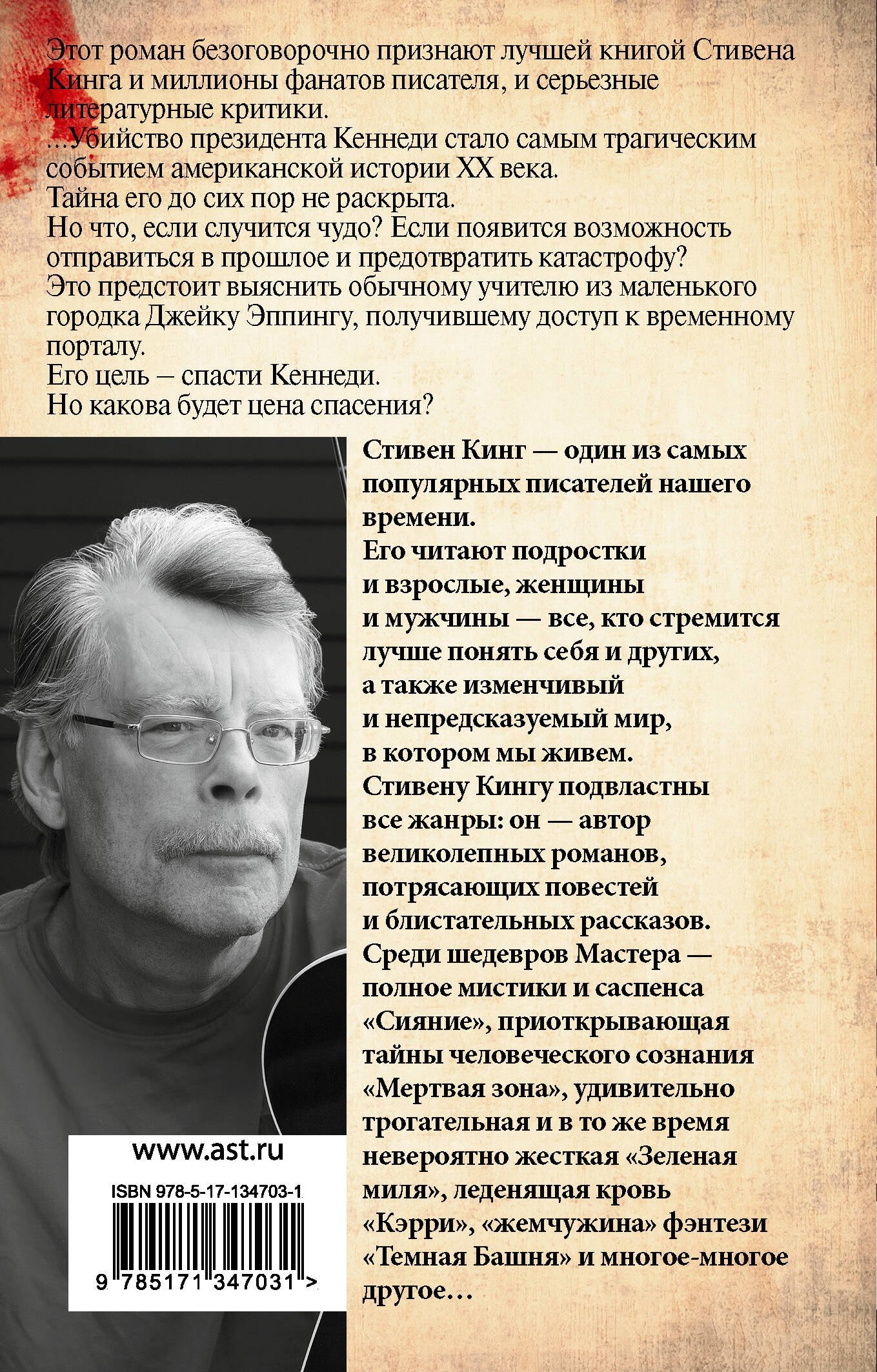 ...Убийство президента Кеннеди стало самым трагическим событием американской истории ХХ века. Тайна его до сих пор не раскрыта. Но что, если случится чудо? Если появится возможность отправиться в прошлое и предотвратить катастрофу?