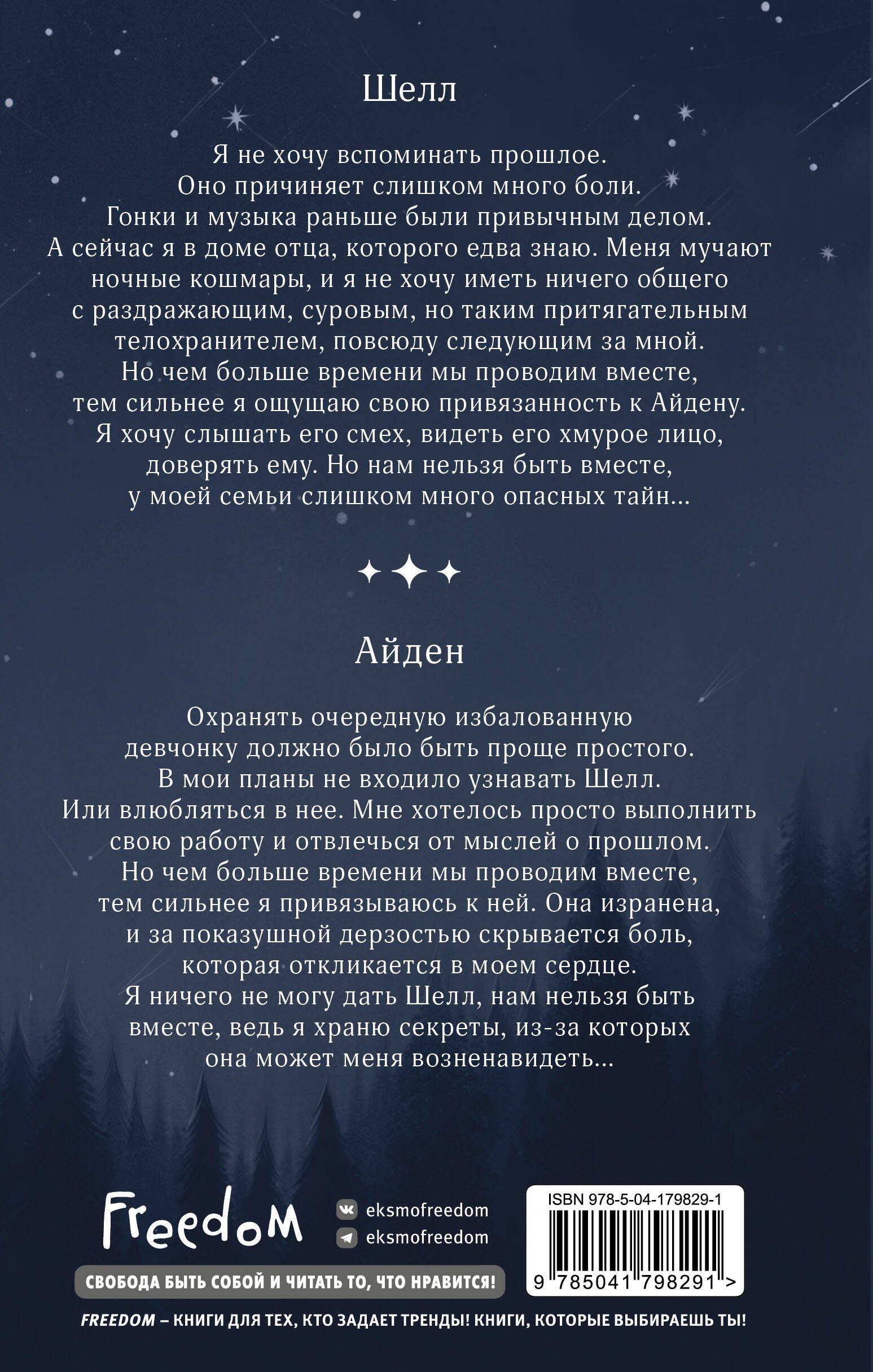 Я не хочу вспоминать прошлое. Оно причиняет слишком много боли. Гонки и музыка раньше были привычным делом. А сейчас я в доме отца, которого едва знаю. Меня мучают ночные кошмары, и я не хочу иметь ничего общего с раздражающим, суровым, но таким притягательным телохранителем, повсюду следующим за мной. Но чем больше времени мы проводим вместе, тем сильнее я ощущаю свою привязанность к Айдену. Я хочу слышать его смех, видеть его хмурое лицо, доверять ему. Но нам нельзя быть вместе, у моей семьи слишком много опасных тайн…