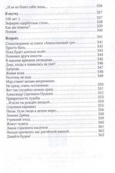 Творчество писателя Веры Мир занимает особую нишу между художественной литературой, психологией и философией. Вера Мир - наблюдатель и в то же время активный участник жизни, продолжает создавать новые жанры в прозе и в стихах. Здесь вы найдете произведения с элементами волшебства, блиц-рассказы и многое другое.
