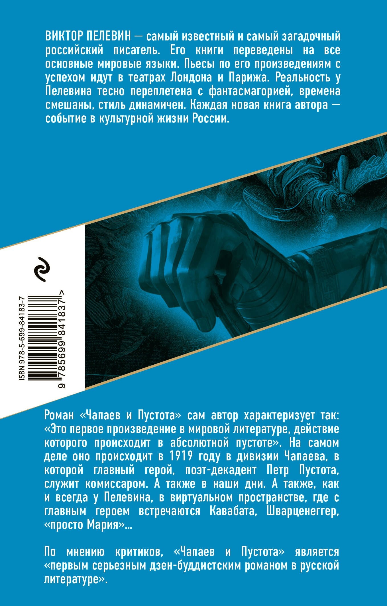 Виктор Пелевин — известный российский писатель-постмодернист. Роман «Чапаев и Пустота» был номинирован на Малую Букеровскую премию, а также вошел в шорт-лист Дублинской литературной премии. По мнению критиков, это произведение — «первый серьезный дзен-буддистский роман в русской литературе».