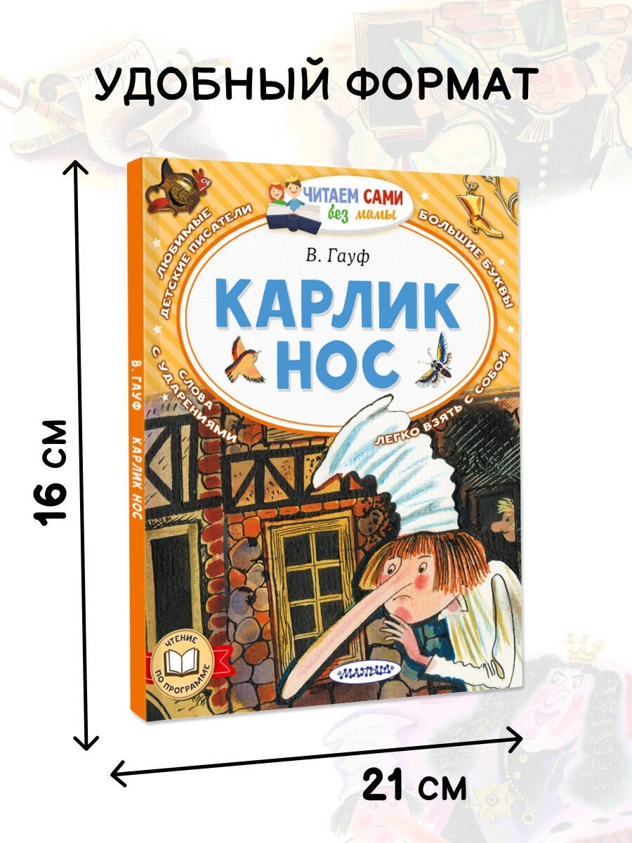Сказочная история о смелом и добром мальчике Якобе станет отличным вариантом для первого чтения. Увлекательная история про злую ведьму, заколдованную принцессу и загадочном Карлике Носе обязательно понравится вашему малышу. История научит ребят доброте, дружбе и храбрости. Крупные буквы и ударения помогут прочитать все истории самостоятельно.