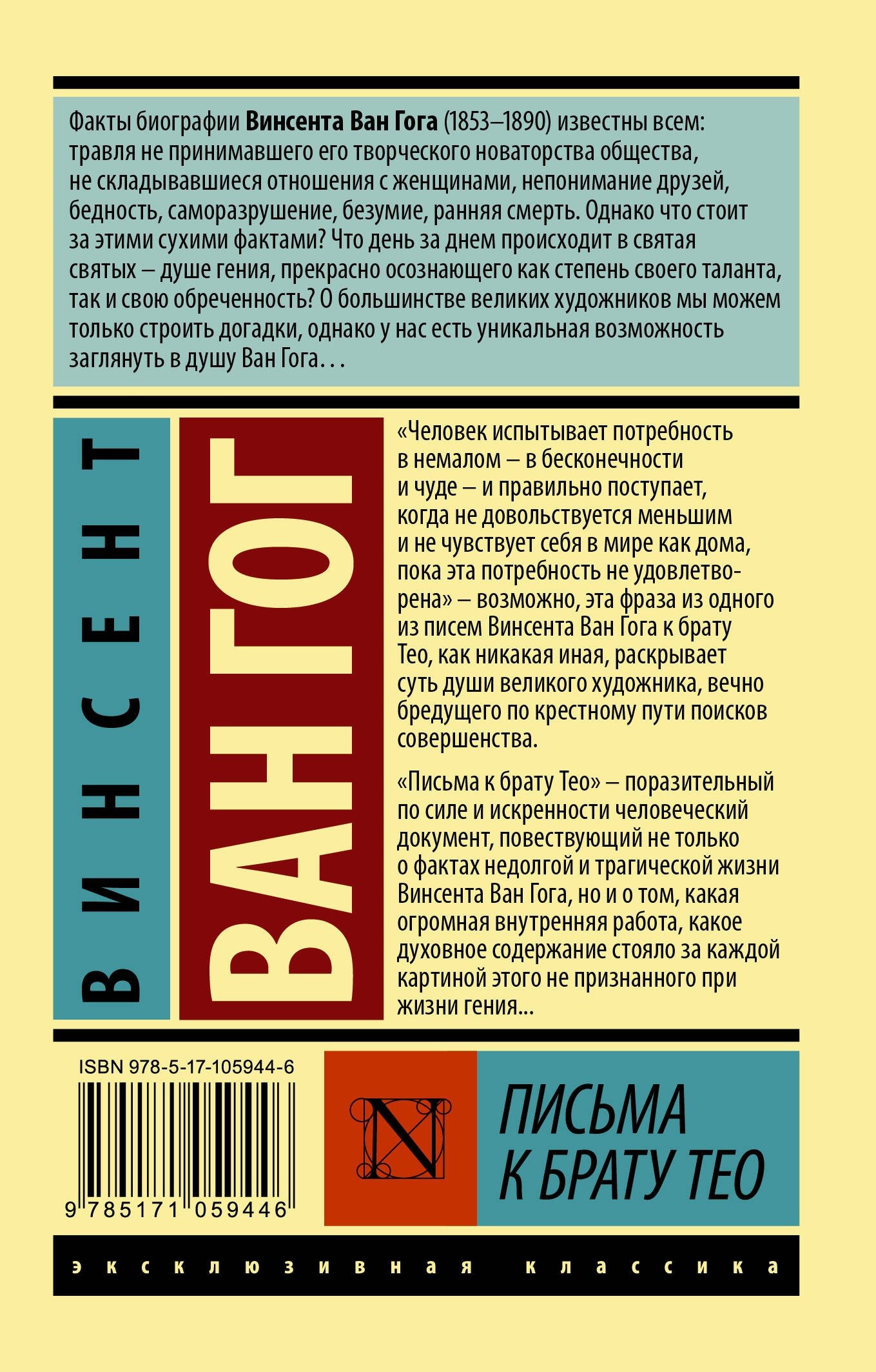 «Письма к брату Тео» – поразительный по силе и искренности человеческий документ, повествующий не только о фактах недолгой и трагической жизни Винсента Ван Гога, но и о том, какая огромная внутренняя работа, какое духовное содержание стояло за каждой картиной этого не признанного при жизни гения...
