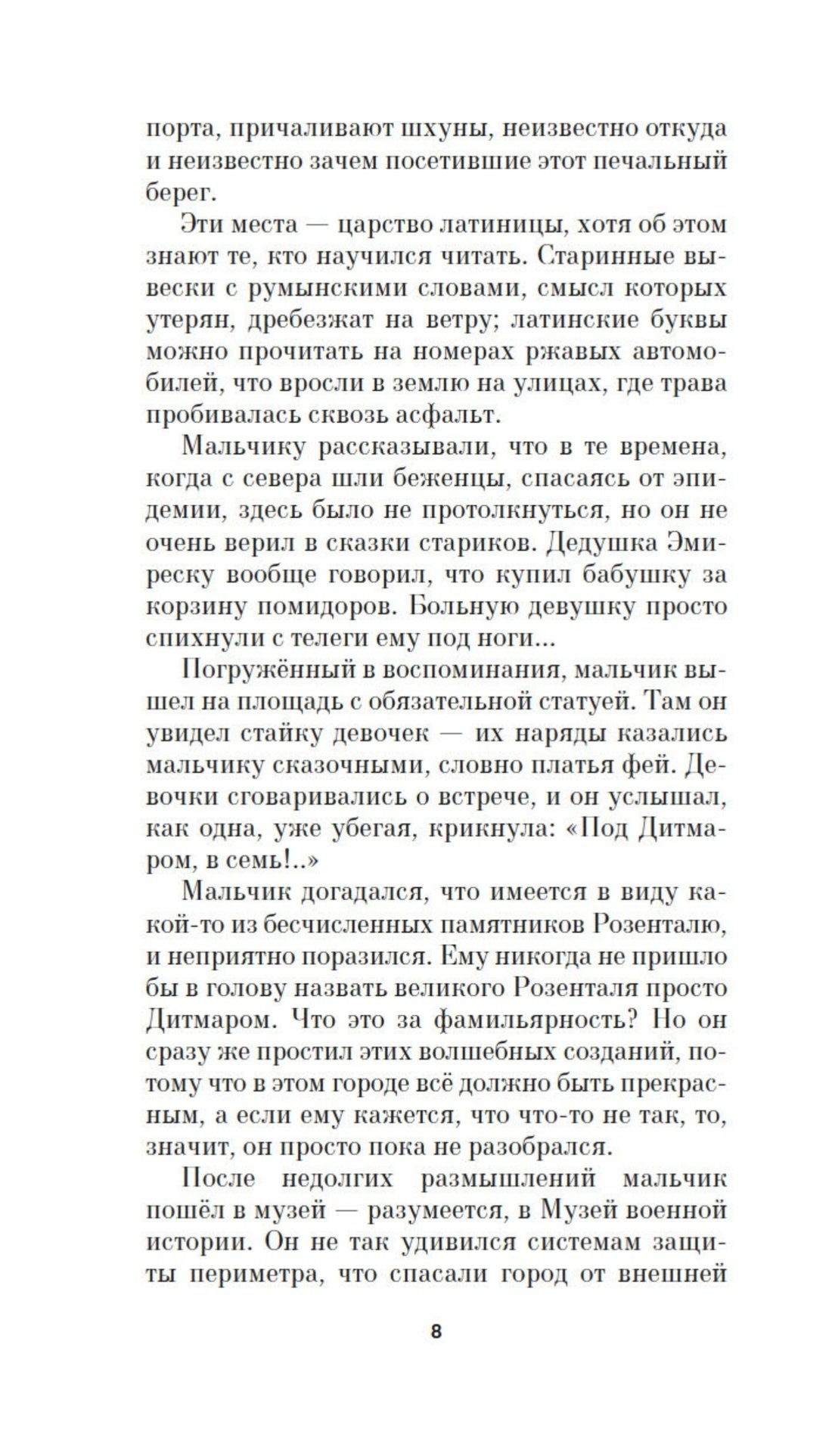 В некоторых языках, у австралийских племён и народов Севера, существует грамматическое время «небудущее». Мистика происходит «сейчас» и «уже», а вот будущее далеко и неопределённо. Чудо живёт в настоящем, которое только притворяется будущим. Герои Владимира Березина, знакомые по «СНТ» и «Пентаграмме Осоавиахима», во главе с Владимиром Раевским видят преображённое настоящее, расходящееся, как тропки в саду Борхеса. Это мир, в котором победили не большевики, а толстовцы; кофе запрещён как наркотик. Среди северной равнины стоит бетонный волк, а в тихой городской воде живёт Царь рыб, смерть приходит к шахматистам, требуя доиграть старую партию, а гармонист спасает человечество от безумных идей страшного карлика. За всем этим отрешённо наблюдает со своего постамента бронзовый Розенталь. Возможно, то, что сегодня выглядит диковиной и фантастическим допущением, уже завтра окажется обыденной реальностью. Ведь таков великий закон писателей-демиургов, да и подобные превращения мы видели уже не раз…