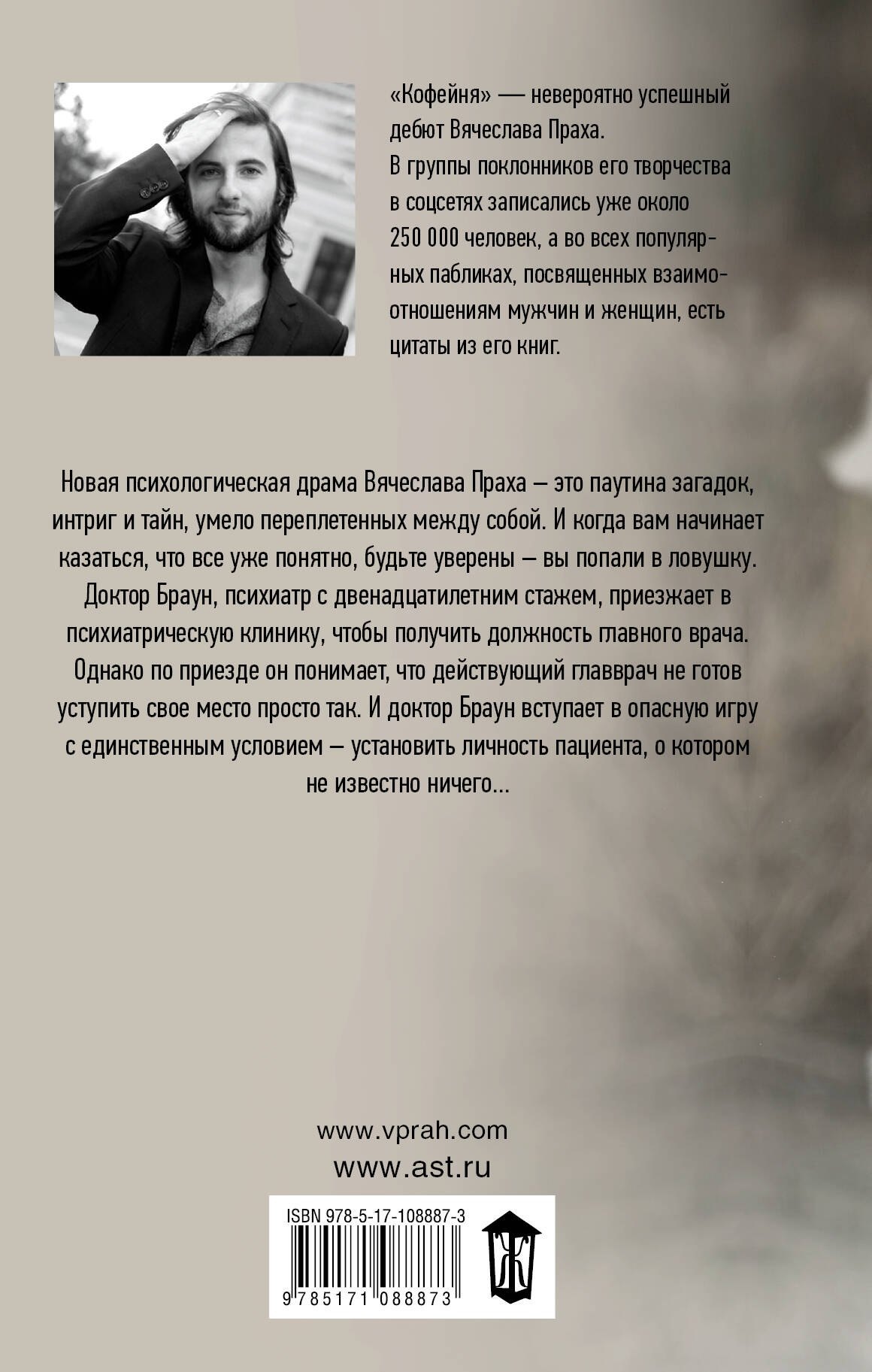 Новая психологическая драма Вячеслава Праха — это паутина загадок, интриг и тайн, умело переплетенных между собой. И когда вам начинает казаться, что все уже понятно, будьте уверены – вы попали в ловушку. Доктор Браун, психиатр с двенадцатилетним стажем, приезжает в психиатрическую клинику, чтобы получить должность главного врача. Однако по приезду он понимает, что действующий главврач не готов уступить свое место просто так. И доктор Браун вступает в опасную игру с единственным условием — установить личность пациента, о котором неизвестно ничего...